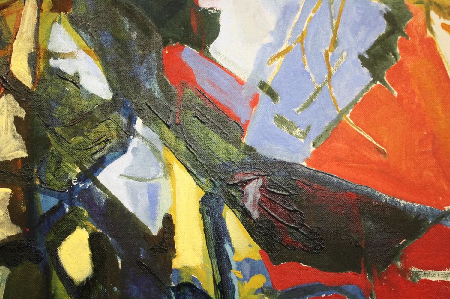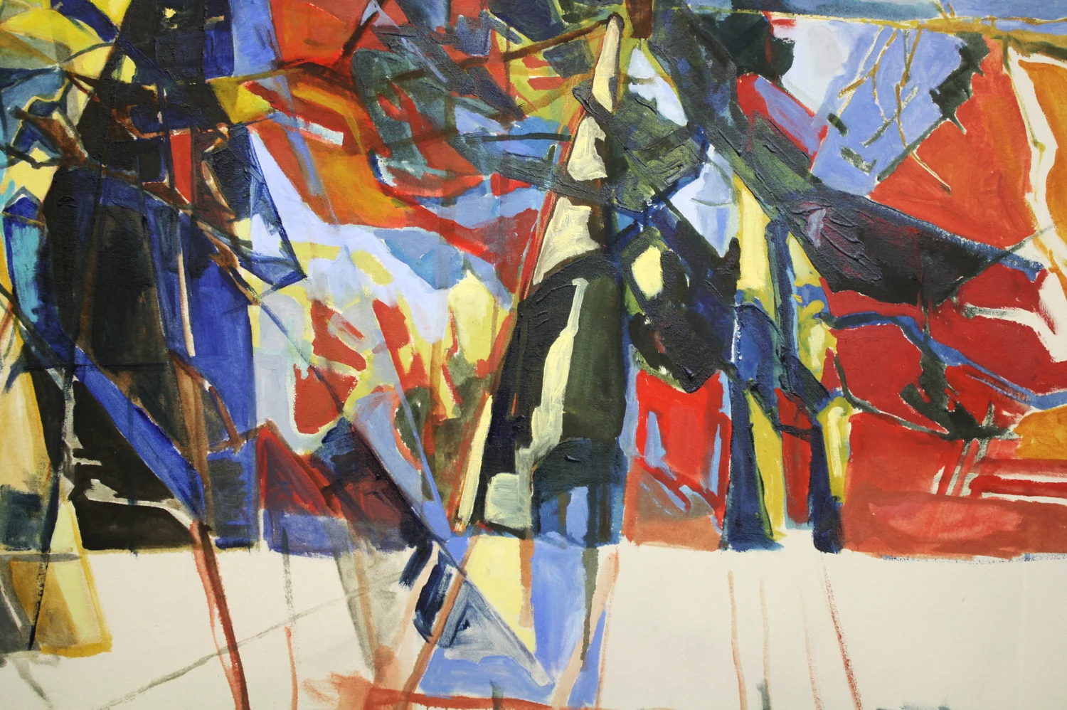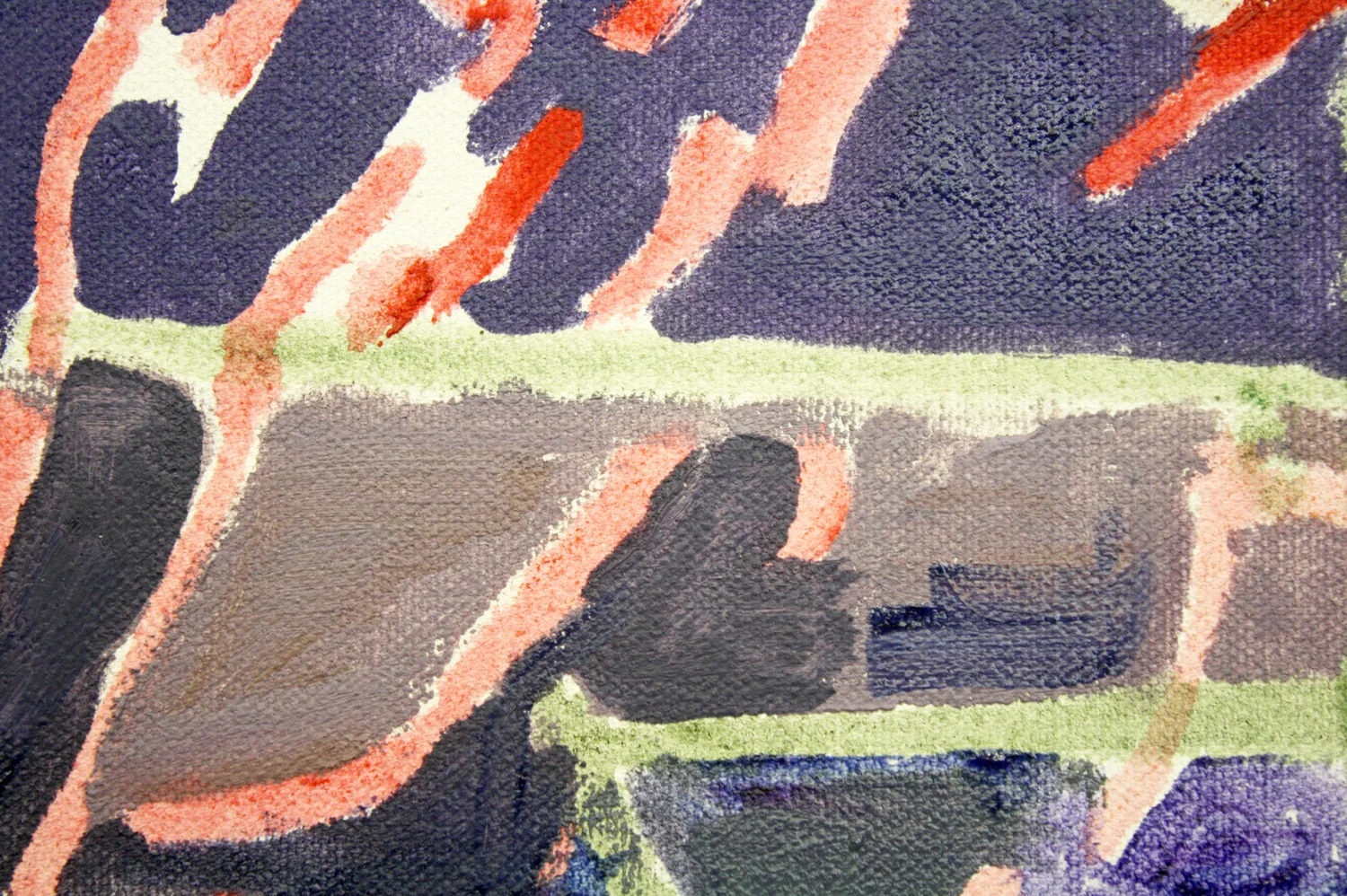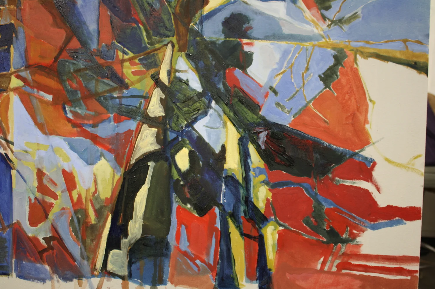 sequence [3-4] measuring the analysis and placing thought the beginning of the painting is marked by the visual manifestation of the collected analytical conclusions. here the shifting perspectives are made apparent through changes in color, hinting at planar realms with line, and the exchanges between the grounded trunks of the trees and their skyward partners of branches