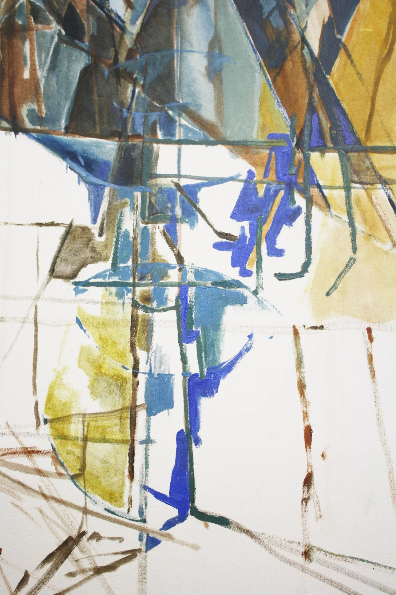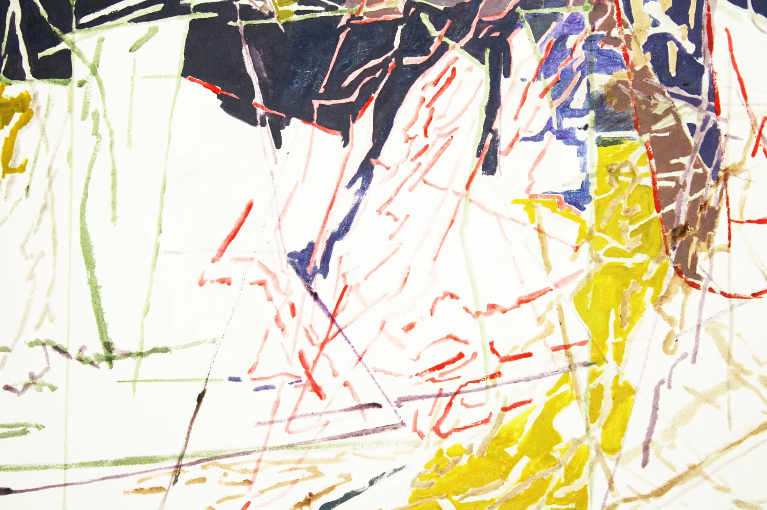 color re-emerges as planes that give boundaries and surfaces for the measured lines to dwell with. some of the planes begin to trace their own existence, free of the line, and emerge then as their own formation of movement and line