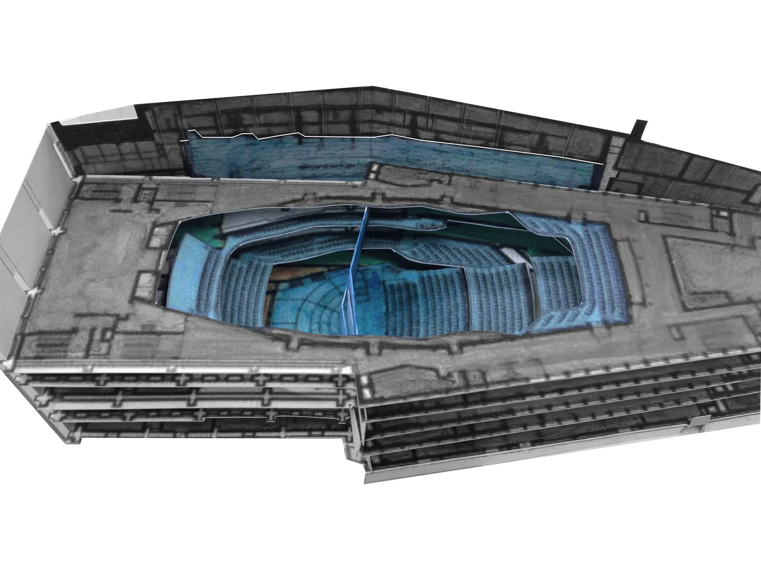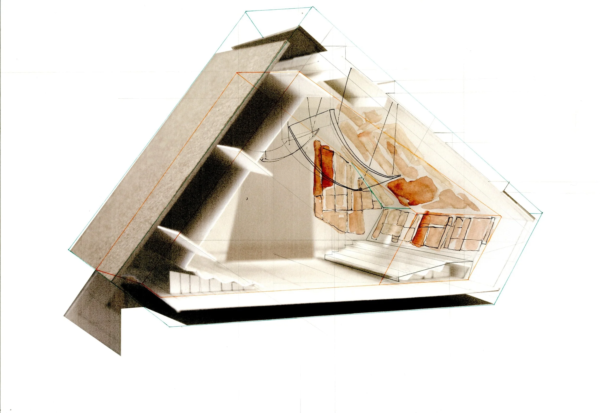 The building strives to bring an intimacy of sound and people within the performance space. The main performance space holds a maximum of 400 people. The seating area surrounds the stage area, allowing people and instruments to converse. the transitional area between other programmatic school, the architecture and fine arts buildings, strives to act as a gathering and passive egress along a main campus axis of travel. the entrance to the hall acts as a gallery to bring a collaboration between the arts.
