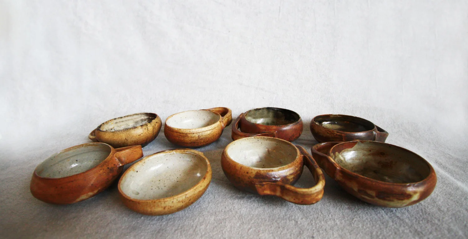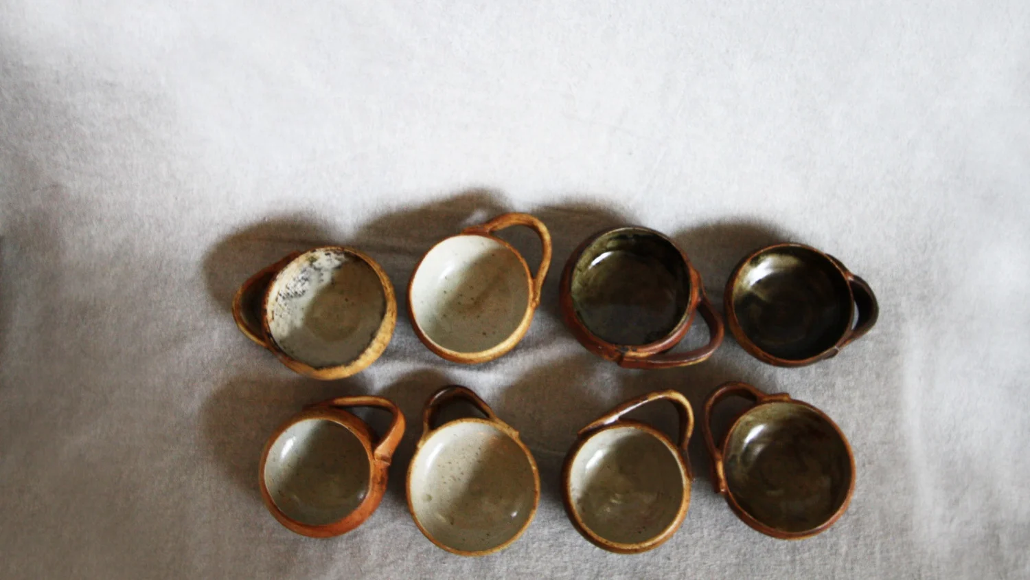 [1-10] derived from elements of water, these stacking bowls find form from the marriage of the tea-cup and saucer. the form emulates compression to emphasize the horizontal nature of calm liquid. their earthen outside of matte glazes contain their watery insides, depicted by their reflective glazing.