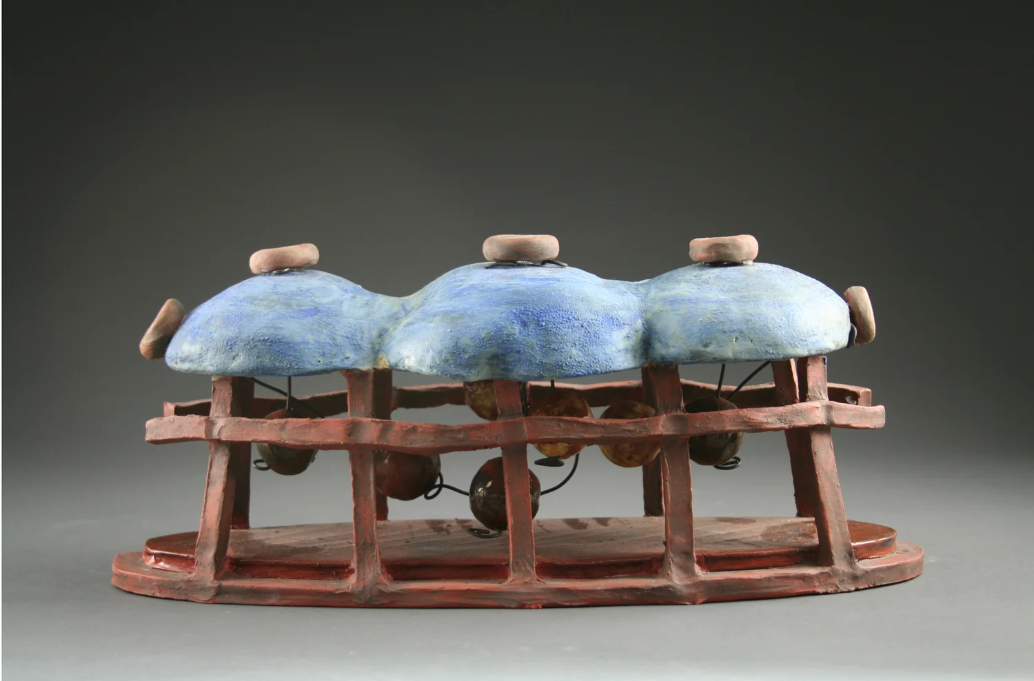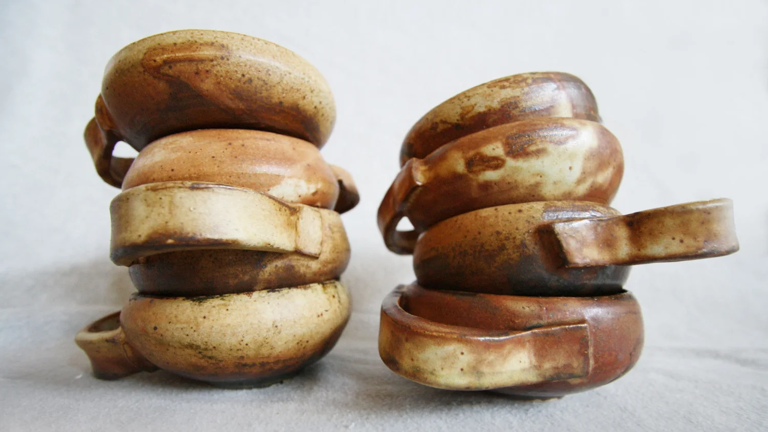 convex and concave forms are made with techniques of hand-building and use of the wheel. these forms meet linear elements excavated and etched into layering slabs of terra-cotta and sand clays.