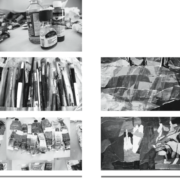 layering planes of paper, color, paint, and transparencies creates contrast, depth, and structures space.