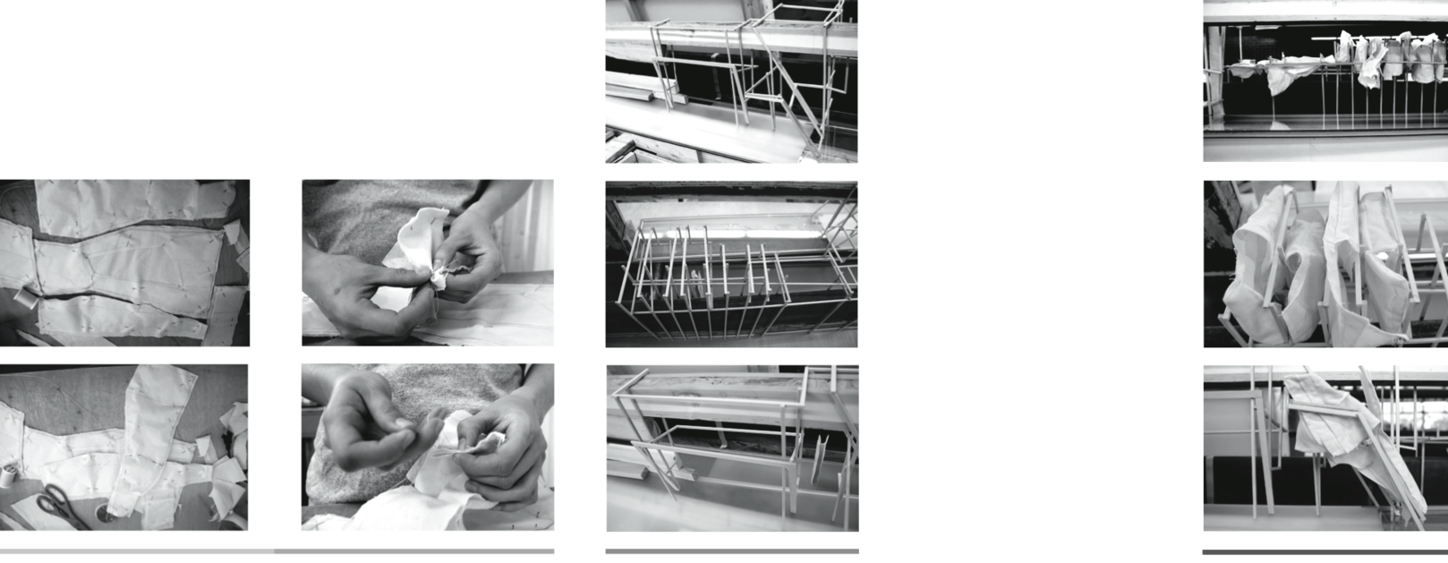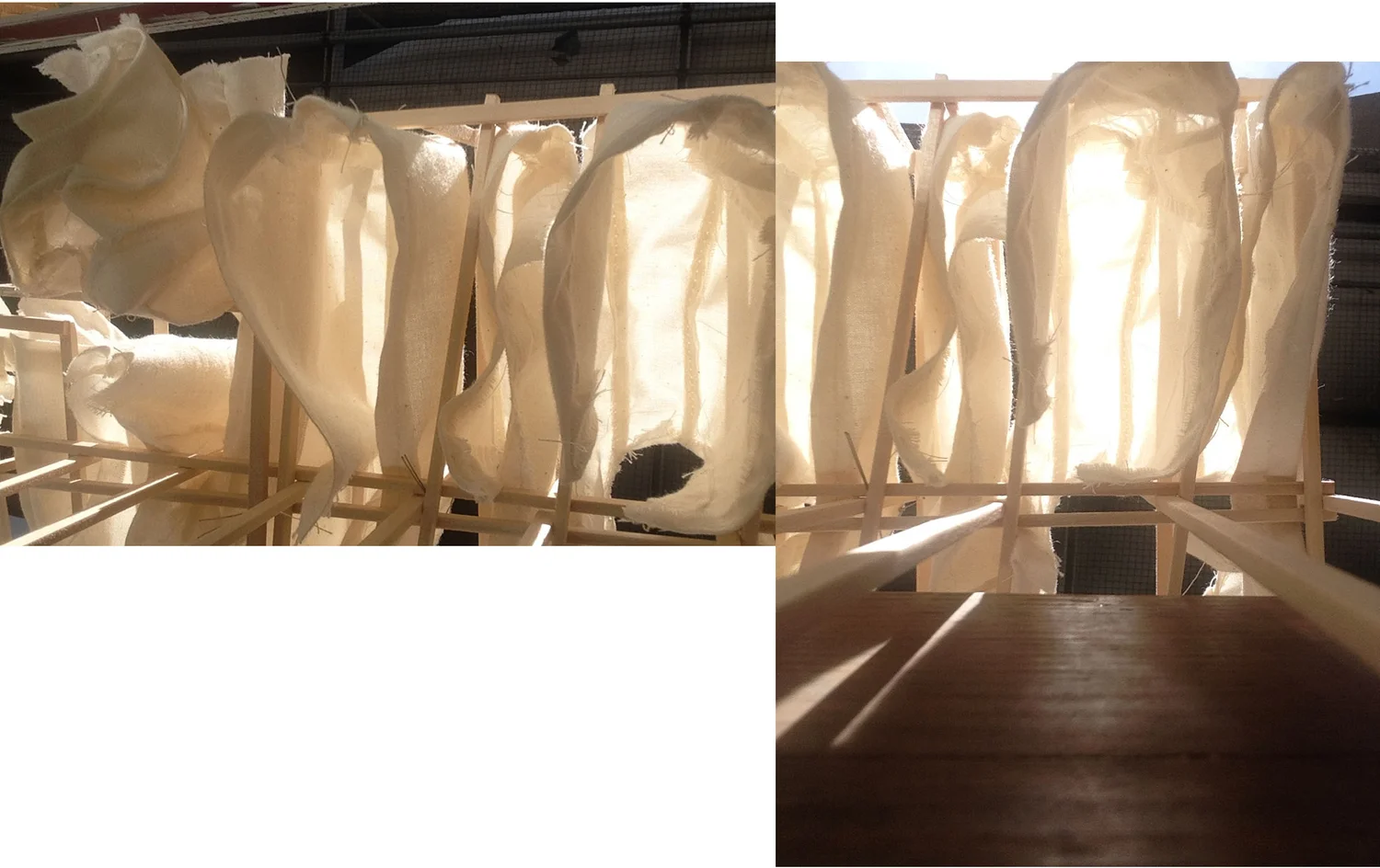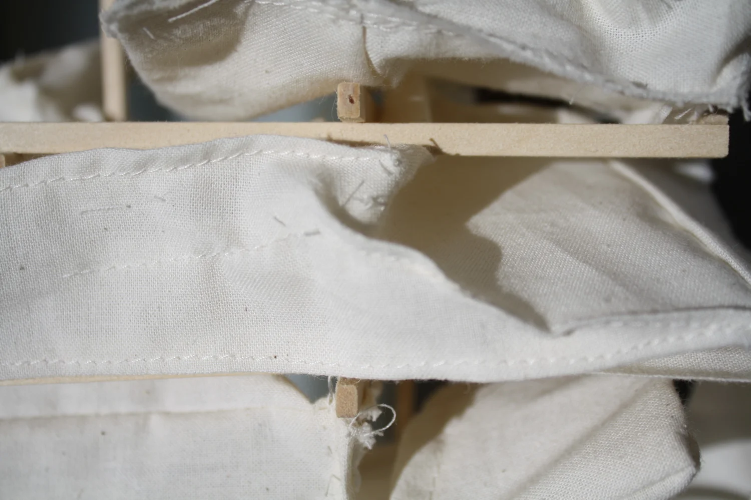 the making of cloth space is re-examined by exploring the shapes through hand sewing and the sewing machine. the shapes are re-examined to better receive light and wind