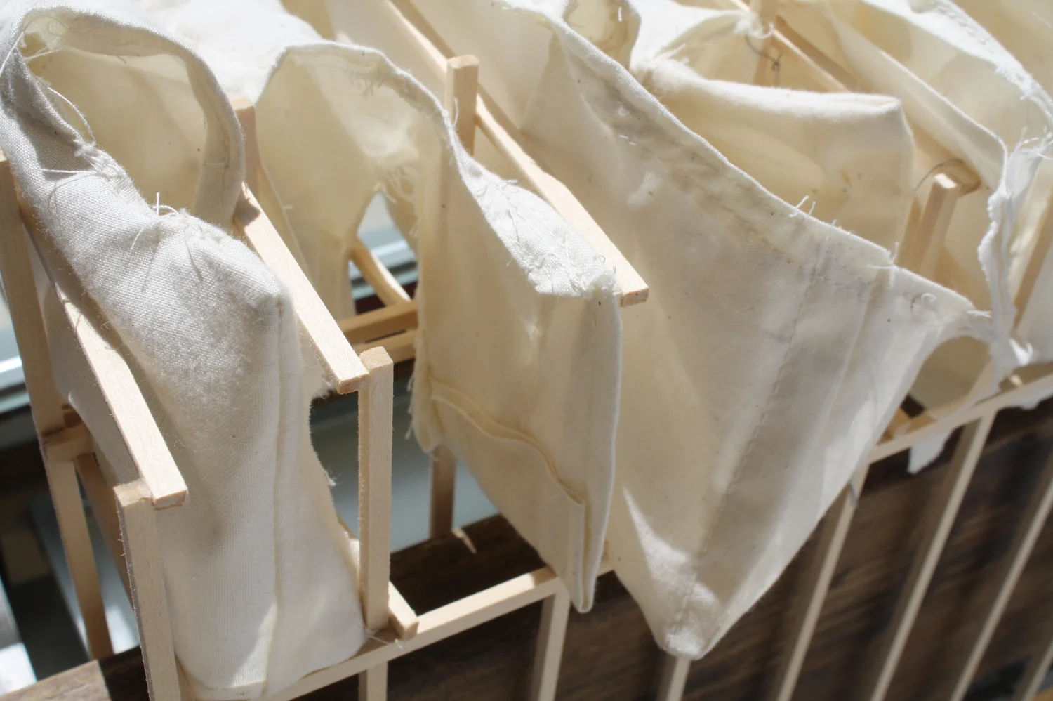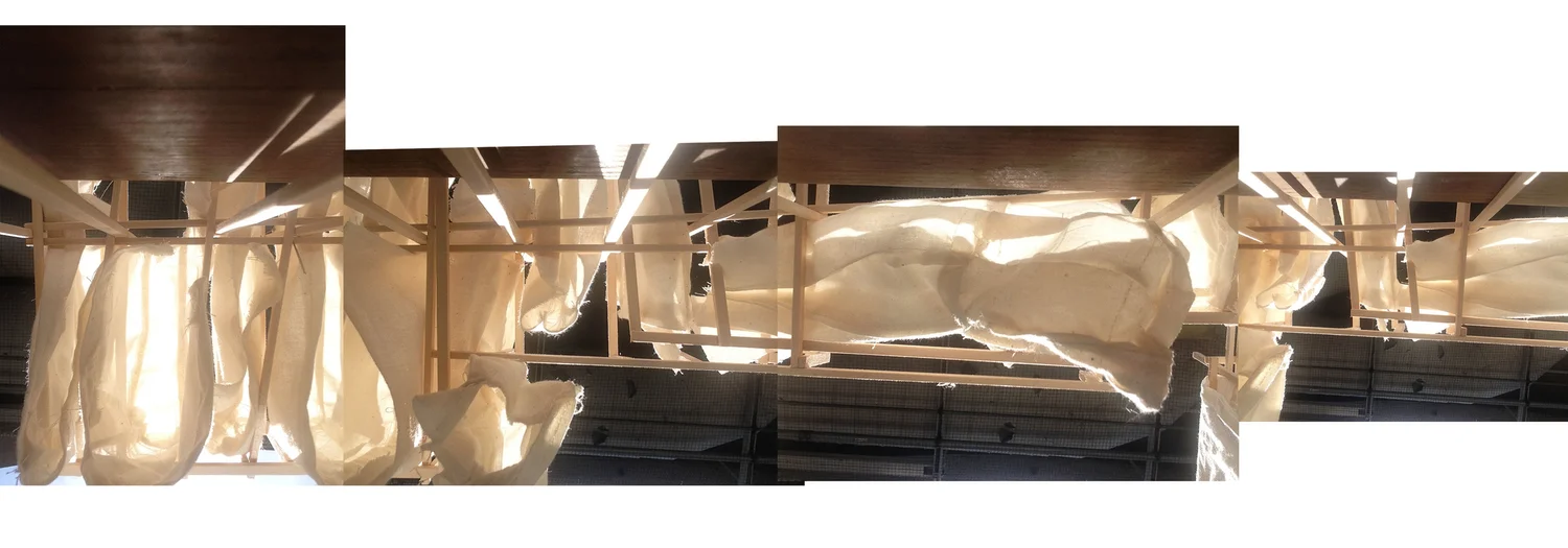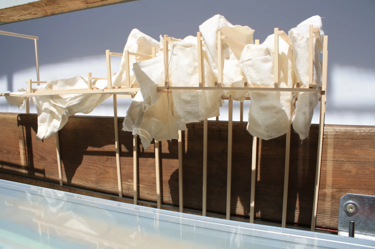 the making of cloth space is re-examined by exploring the shapes through hand sewing and the sewing machine. the shapes are re-examined to better receive light and wind