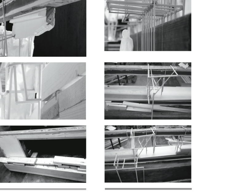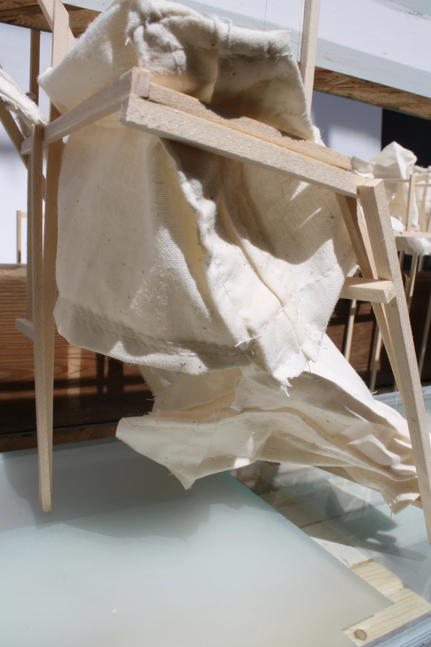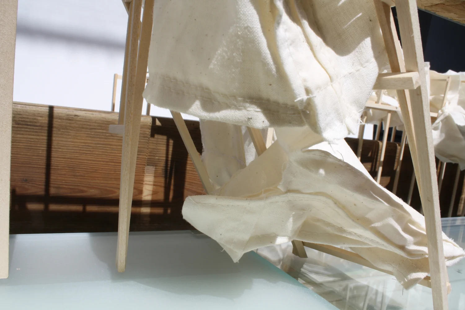 the structure of the wood frames takes moments from the previous but also expands on its language to provide particular typologies of frames for particular cloth constructions