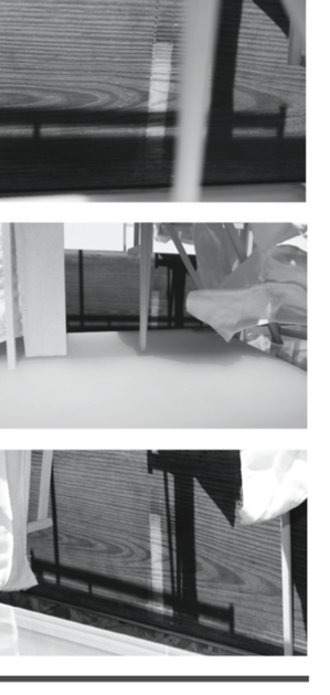 hold glass. the third plane is a shifted piece of wood meant to receive light and shadow as the painted fence was the temporal museum of its place